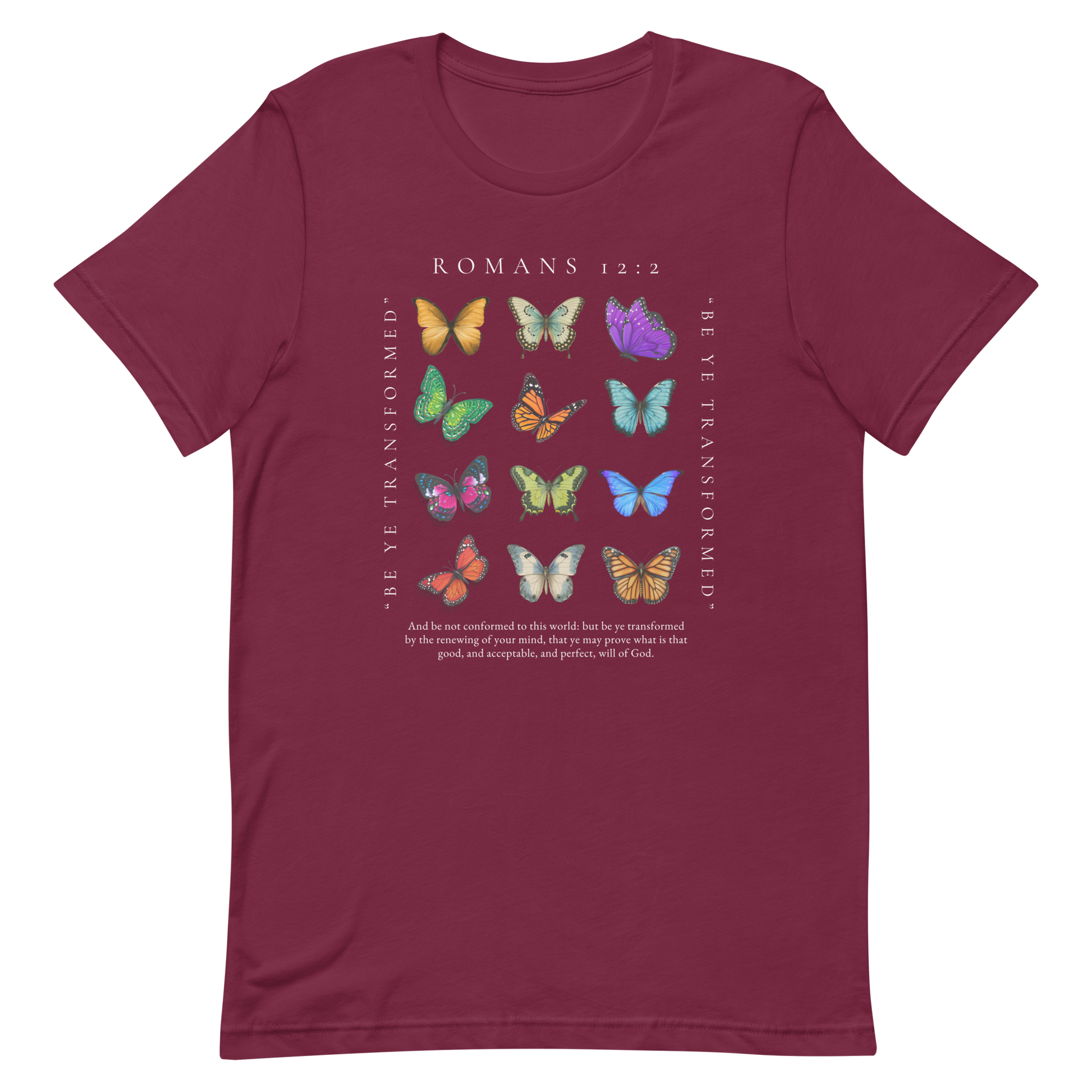 BE YE TRANSFORMED| ROMANS 12:2 T-Shirt (#5 butterflies)
